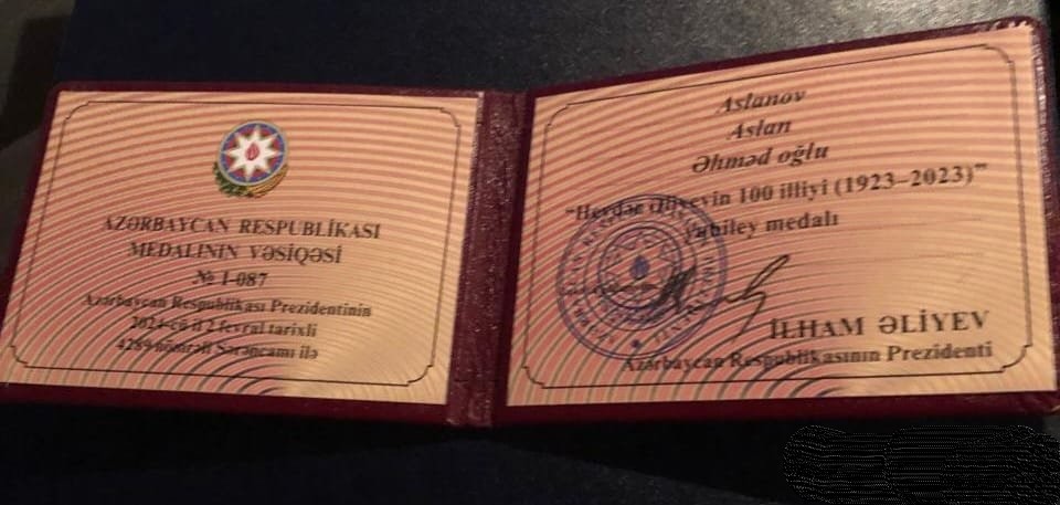 Təcrübəli jurnalist, AZƏRTAC-ın sabiq sədri Aslan Aslanov Azərbaycan Prezidenti İlham Əliyevin Sərəncamı ilə “Heydər Əliyevin 100 illiyi (1923-2023)” Azərbaycan Respublikasının yubiley medalı ilə təltif edilib.