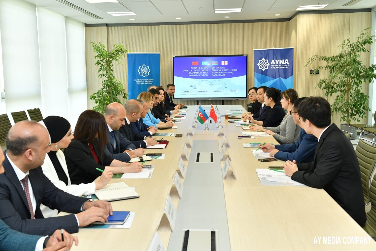 Bu gün yük nəqliyyat vasitələrini müşayiət edən Çin nümayəndə heyəti ilə Rəqəmsal İnkişaf və Nəqliyyat Nazirliyi, Dövlət Gömrük Komitəsi, “Xəzər Dəniz Gəmiçiliyi” QSC və Bakı Beynəlxalq Dəniz Ticarət Limanı nümayəndələrinin iştirakı ilə görüş keçirilib. Tədbirdə Çin nümayəndə heyətinə Azərbaycan ərazisindən tranzit daşımalar, yük növlərinin daşınmasına dair tələblər, yükdaşımaların tənzimlənməsi və s. barədə ətraflı məlumat verilib, təqdimatlar nümayiş etdirilib.