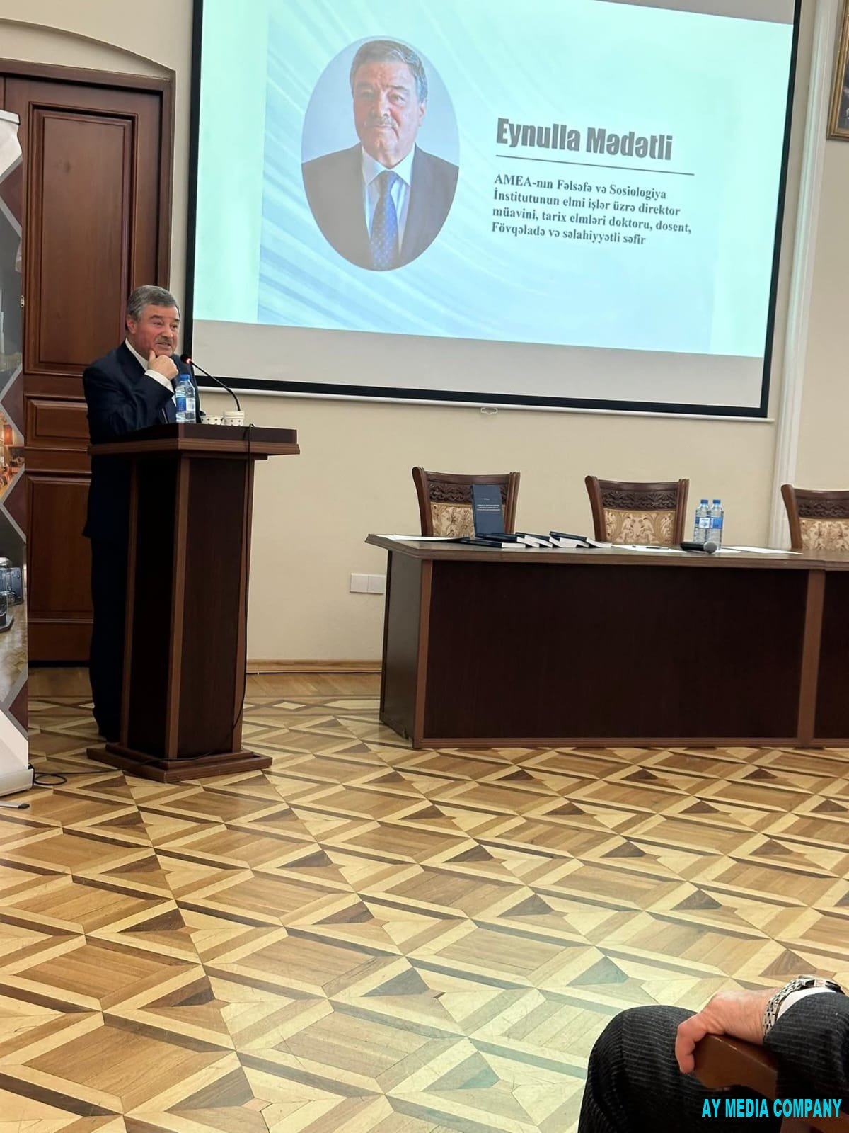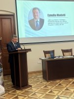 AMEA-nın Fəlsəfə və Sosiologiya İnstitutunun elmi işlər üzrə direktor müavini, tarix elmləri doktoru, dosent, Fövqəladə və səlahiyyətli səfir Eynulla Mədətli “S.C. Pişəvərinin ölümünə dair mayor Həsən Nəzərinin xatirələri”nə həsr olunan məruzəsini təqdim edib.