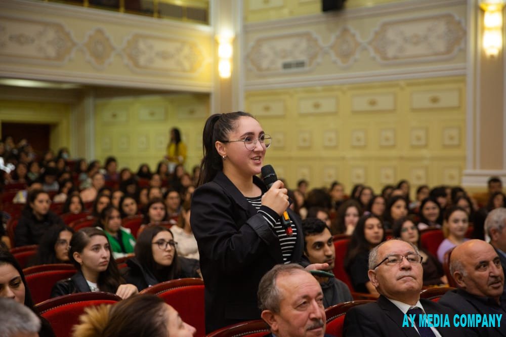 Astrofizik daha sonra Bakı Dövlət Universitetində “SABAH” qrupunun tələbələri ilə görüşüb. O, gənclərə kainatın mənşəyi və təkamülü, “James Webb” teleskopunun imkanları barədə danışıb. Görüş tələbələrin aktiv sual-cavab sessiyası ilə davam edib.