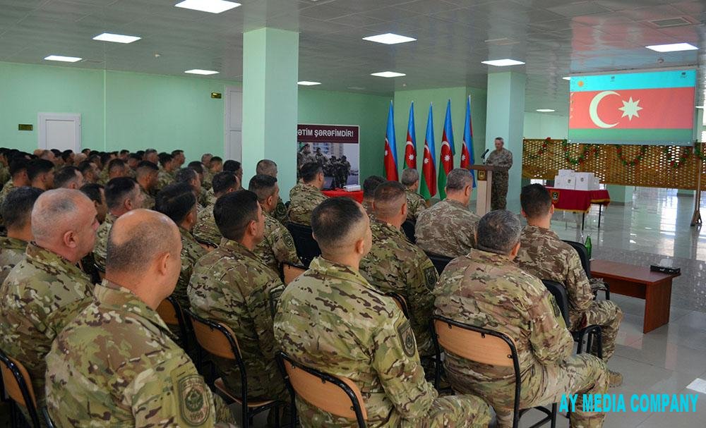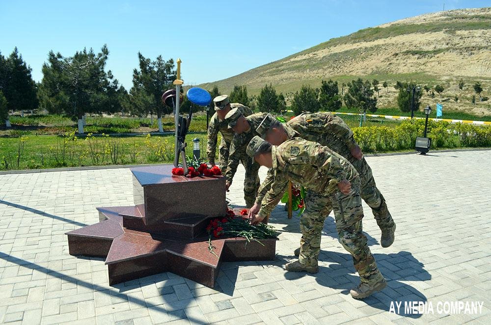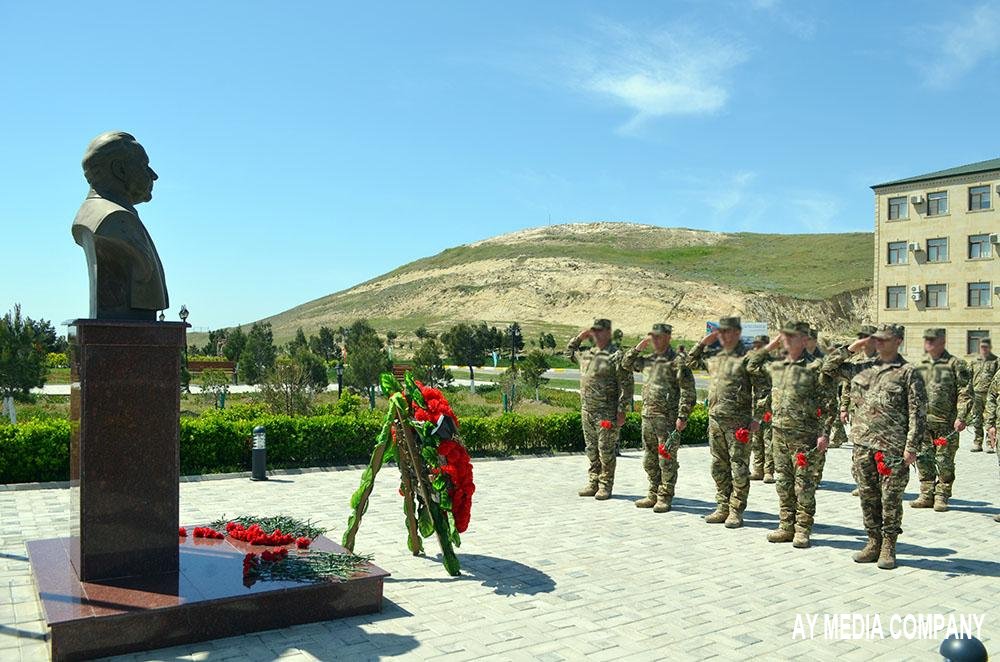Əvvəlcə hərbi hissədə ulu öndər Heydər Əliyevin büstü və şəhidlər abidəsi ziyarət olunub, əklil və gül dəstələri qoyulub.