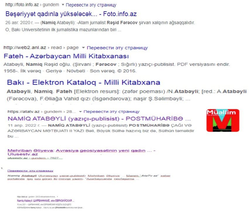 Hörmətlə, azad yazıçı-publisist , bitərəf demokrat Namiq Atabəyli (Fərəcov Namiq Rəşid oğlu): (şəxsiyyət vəsiqəsi: AZE № 060215446; yaşayış və qeydiyyat ünvanı: Bakı şəhəri Nərimanov r.-nu, Təbriz küçəsi, ev-2/4, mənzil-12; əlaqə tel.: 055-495- 38-65; 012-441-13-61.).