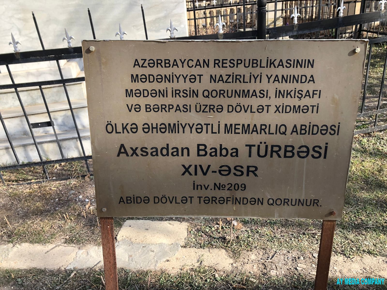 Qarabağın dilbər güşəsi Bərdənin İmamzadə kompleksinin ərazisində müqəddəs İmamzadə məscidinin ətrafında tarixi əhəmiyyət kəsb edən abidələr var. Bunlardan biri də məscidin şərqində yerləşən XIV əsrdə tikilmiş Axsadanbaba türbəsidir. Bir çox ölkə əhəmiyyətli tarixi abidələrimiz var ki, onların yalnız qalıqları günümüzə qədər gəlib çıxıb. Türbənin yalnız yeraltı hissəsi qalıb. Abidəni araşdırdığımız zaman ətrafda yaşayan sakinlər bildirdilər ki, ta qədimdən deyilənə görə həmişə içimizdə yaşayıb, süfrəmizin çörəyindən yeyən mənfur ermənilər bu abidənin daşlarını söküblər. Sərdabənin altıpərli yastı gümbəzi var. Pərlər kəsmə daşdan quraşdırılıb, zəngin ornamentlərlə bəzədilib. Qalıqlardan belə görsənir ki, abidəyə bir neçə yerdən giriş var. Taxçalardakı kaşı üzlüyündə çoxguşəli və ulduz şəkilli naxışlar var. Kitabələri dağıdılıb. Türbənin dağıdılması mənfur düşmənlərimizin əməlləridir. XX əsrin əvvəllərində bolşevik-daşnak istilası dövründə Bərdə rayon İcraiyyə Komitəsinin sədri Xaçimov (ermənidir) və yenə də milliyyətcə erməni memarın göstərişi ilə Axsadanbaba türbəsi sökülüb dağıdılmışdır. Məlumata görə Axsadanbaba türbəsinin şəkli XX əsrin əvvəllərində rus rəssamı tərəfindən çəkilmiş və hazırda Azərbaycan tarixi muzeyində saxlanılır. Abidə dövlət tərəfindən qorunur.