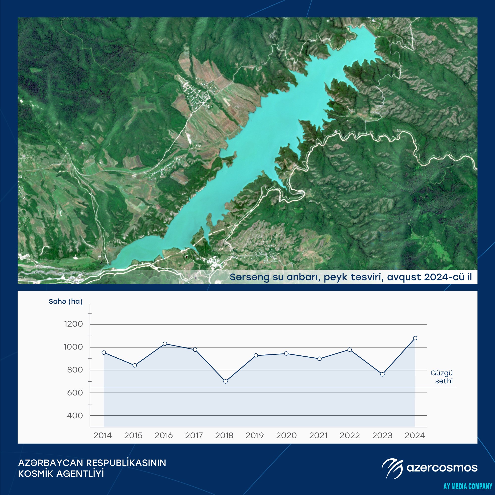Belə ki 2014-2023-cü illər ərzində anbarın su səthində müəyyən artma-azalma olsa da, 2024-cü ilin peyk təsvirlərinin analizləri son 10 il ərzində su səthinin sahəsinin maksimum səviyyəyə – 1065 hektara çatdığını göstərir.
