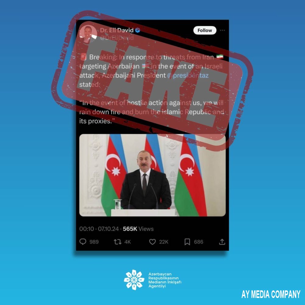 Bununla əlaqədar olaraq, adıçəkilən sosial şəbəkə platformasına məlumatın saxta olduğu bildirilmiş və paylaşımın “X” sosial şəbəkə platforması tərəfindən operativ qaydada silinməsi təmin olunmuşdur.