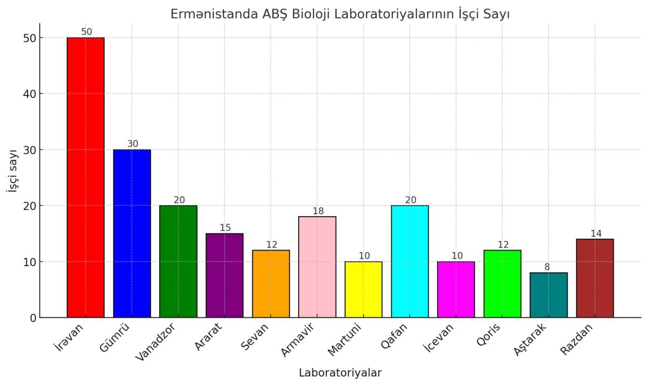 Maraqlıdır ki, Ermənistan kimi kiçik bir ölkədə ABŞ tərəfindən maliyyələşdirilən bioloji laboratoriyalar geniş yayılıb. Ümumilikdə, Ermənistanda 12 laboratoriya fəaliyyət göstərir ki, onlardan üçü İrəvanda yerləşir. Bir neçə il əvvəl Ermənistanın bəzi laboratoriyaları bağlanmış və onların fəaliyyəti haqqında məlumat almaq üçün cəhdlər "strateji obyektlər" kimi qəbul edilərək rədd edilmişdir. Məsələ burasındadır ki, bu "strateji obyektlər" tez-tez yaşayış məntəqələrinin yaxınlığında yerləşdirilmişdir.