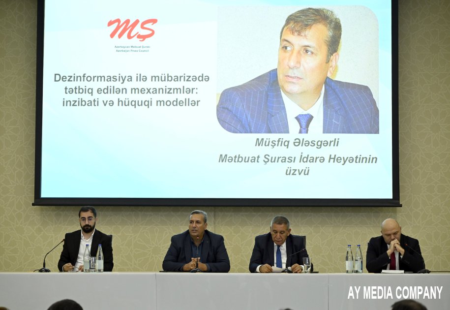 Sonra MŞ İdarə Heyətinin üzvü, Jurnalistlərin Həmkarlar İttifaqının rəhbəri Müşfiq Ələsgərli dezinformasiya ilə mübarizədə tətbiq edilən mexanizmlər, inzibati və hüquqi modellər barədə danışıb.