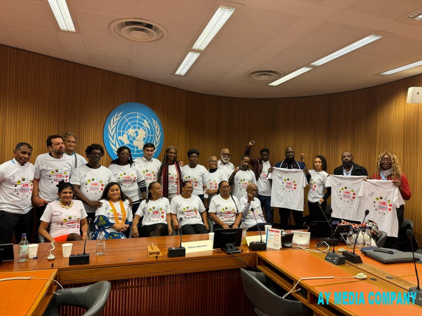 Sonda iştirakçılar üzərində “Fransa müstəmləkəçiliyinə son!” yazılmış köynəklər geyinib və əllərində plakatlarla BMT-nin Cenevrə ofisinin binası qarşısında dinc aksiya keçiriblər.