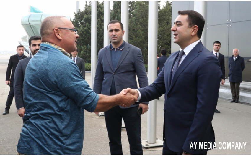 Heydər Əliyev Beynəlxalq Aeroportunda qonağı Azərbaycanın mədəniyyət naziri Adil Kərimli və digər rəsmi şəxslər qarşılayıblar.