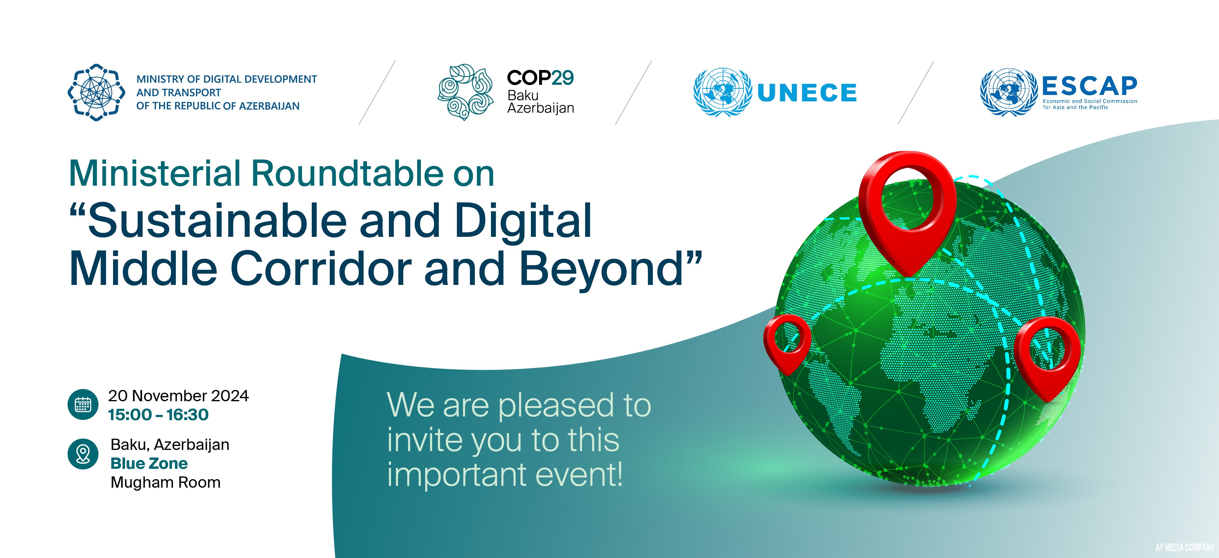 Noyabrın 20-də COP29 çərçivəsində “Dayanıqlı, rəqəmsal Orta Dəhliz və onun