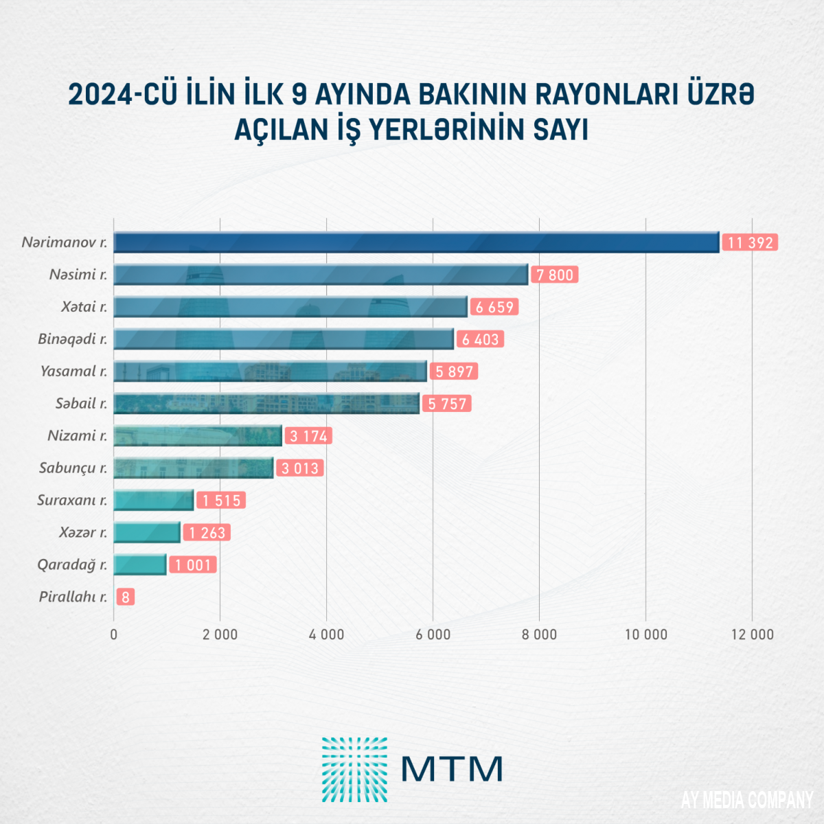 MTM-in Dövlət Statistika Komitəsinin açıqladığı rəsmi məlumatlar əsasında apardığı təhlil göstərir ki, hər il ölkəmizdə on minlərlə yeni iş yerləri açılır və bu say hər ötən il daha da artır.