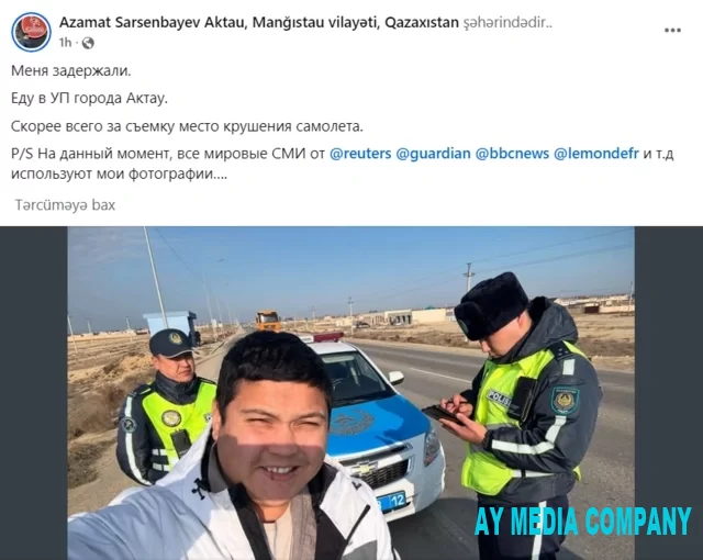"Məni saxladılar. Aktaunun polis idarəsinə gedirəm. Çox güman ki, təyyarənin qəzaya uğradığı yerdə çəkilişlərə görə. Hazırda bütün dünya KİV-i mənim fotolarımdan istifadə edir", - deyə o, paylaşımda bildirib.