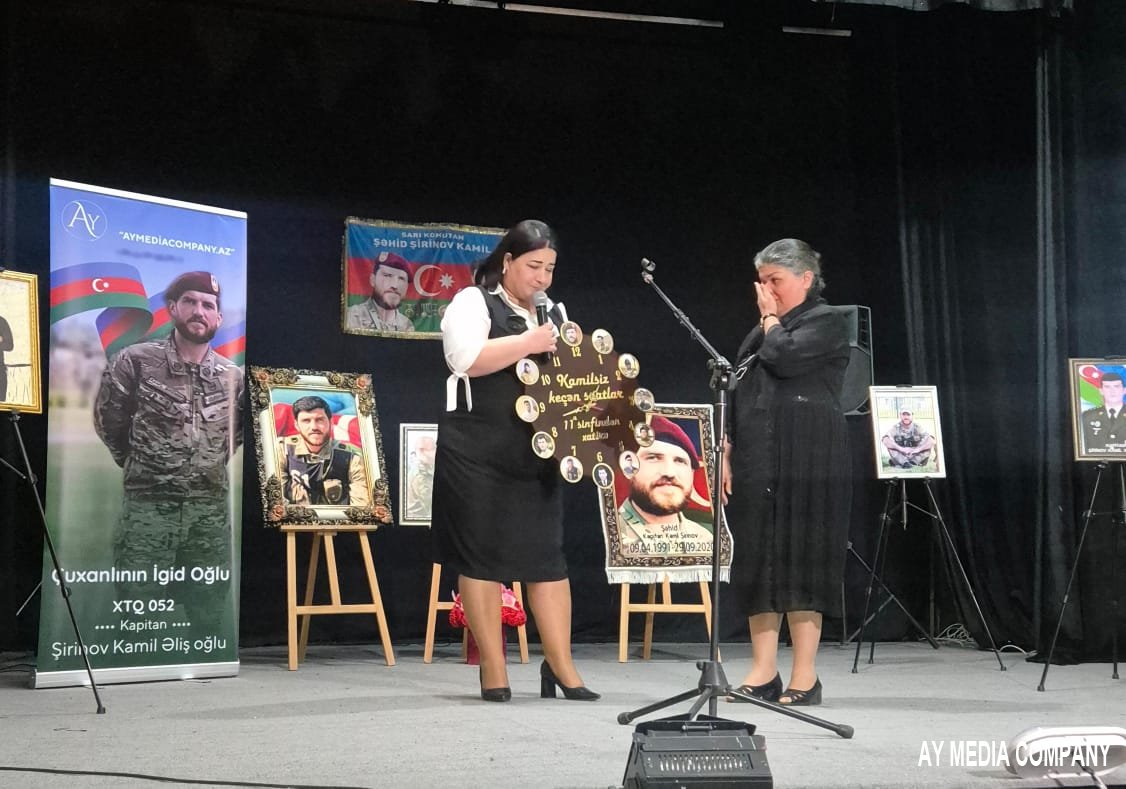 Şəhidimizin sinif rəhbəri Sevinc müəllimə, Leyla müəllimə, Sevda müəllimə, dostları və yaxınları da səhnəyə çıxaraq, Kamilin mərdliyi, cəsarəti və insanlıq xüsusiyyətləri haqqında xatirələrini bölüşdülər. Leyla müəllimə sinif kollektivi adından şəhid anasına hədiyyə təqdim etdi.