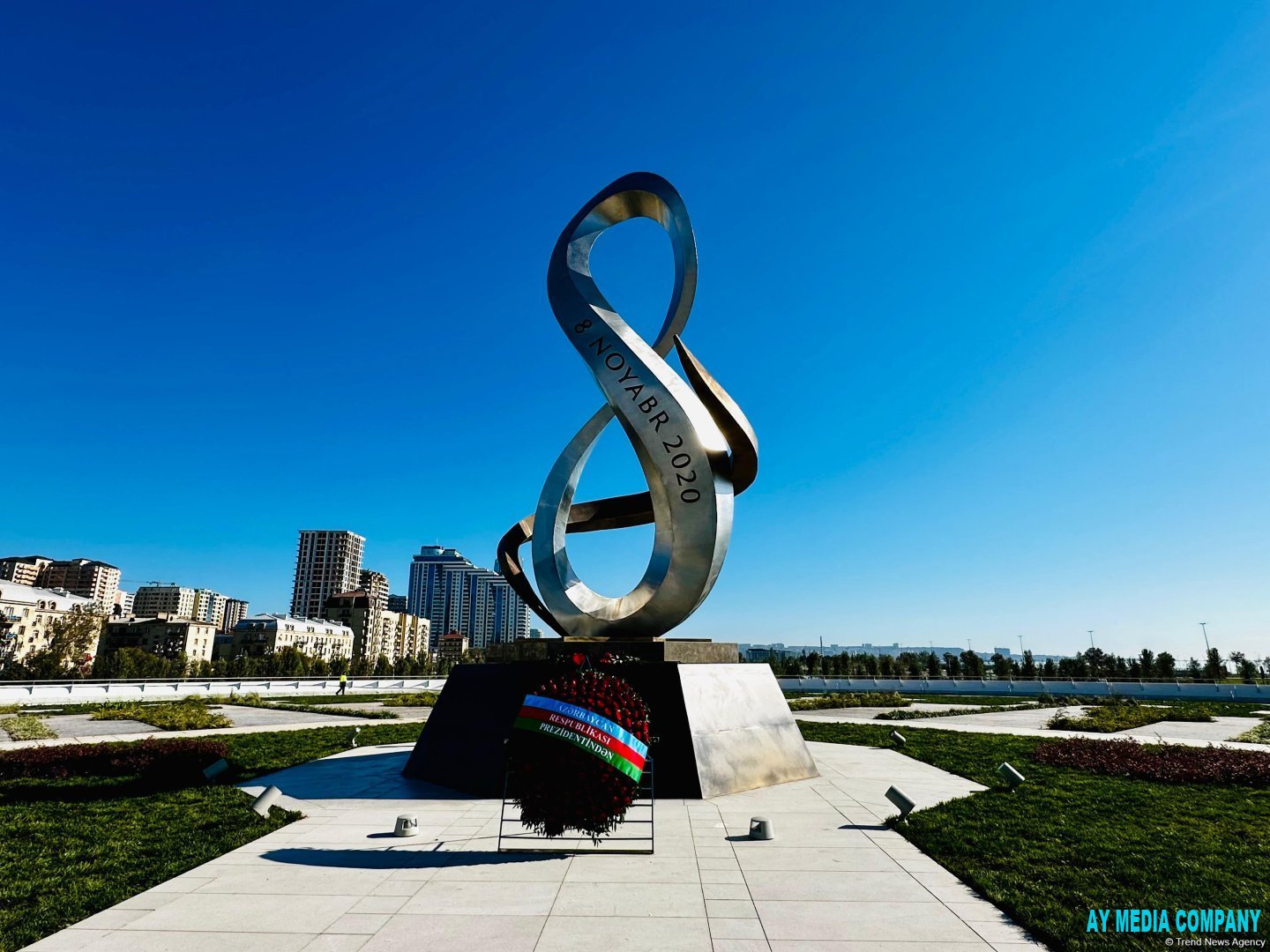 Nazir parkdakı Zəfər abidəsinin önünə əklil qoyub.