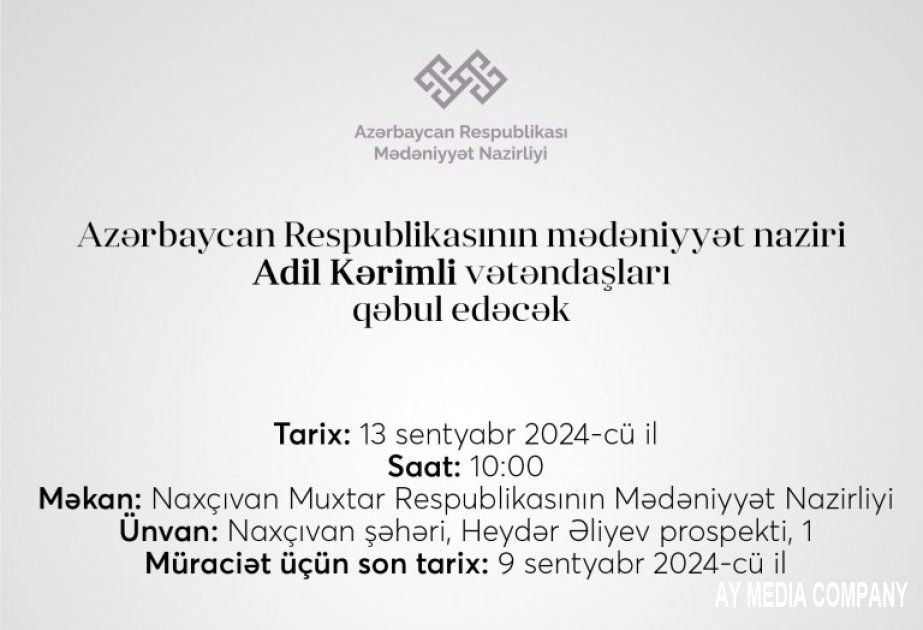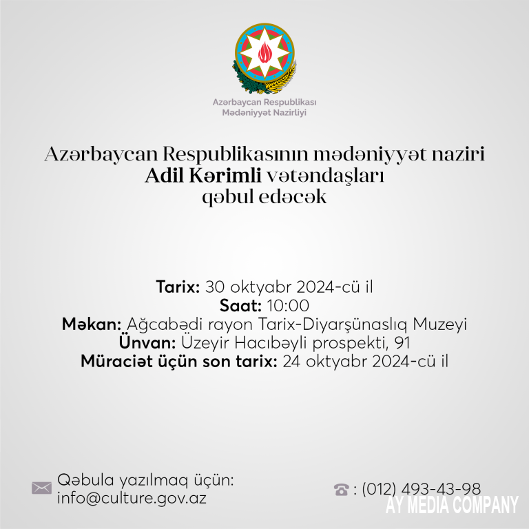 Mədəniyyət naziri Adil Kərimli Ağsuda vətəndaşları qəbul edəcək.