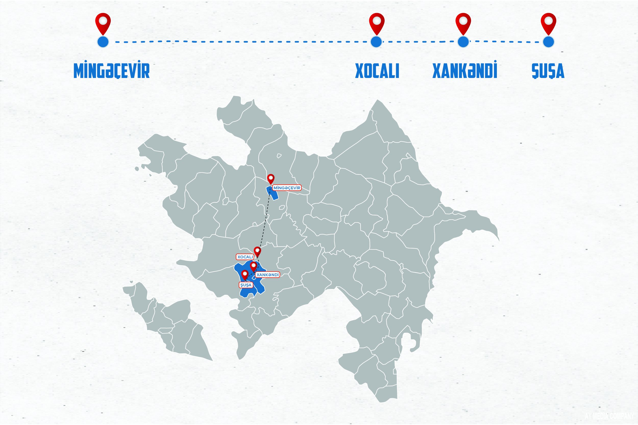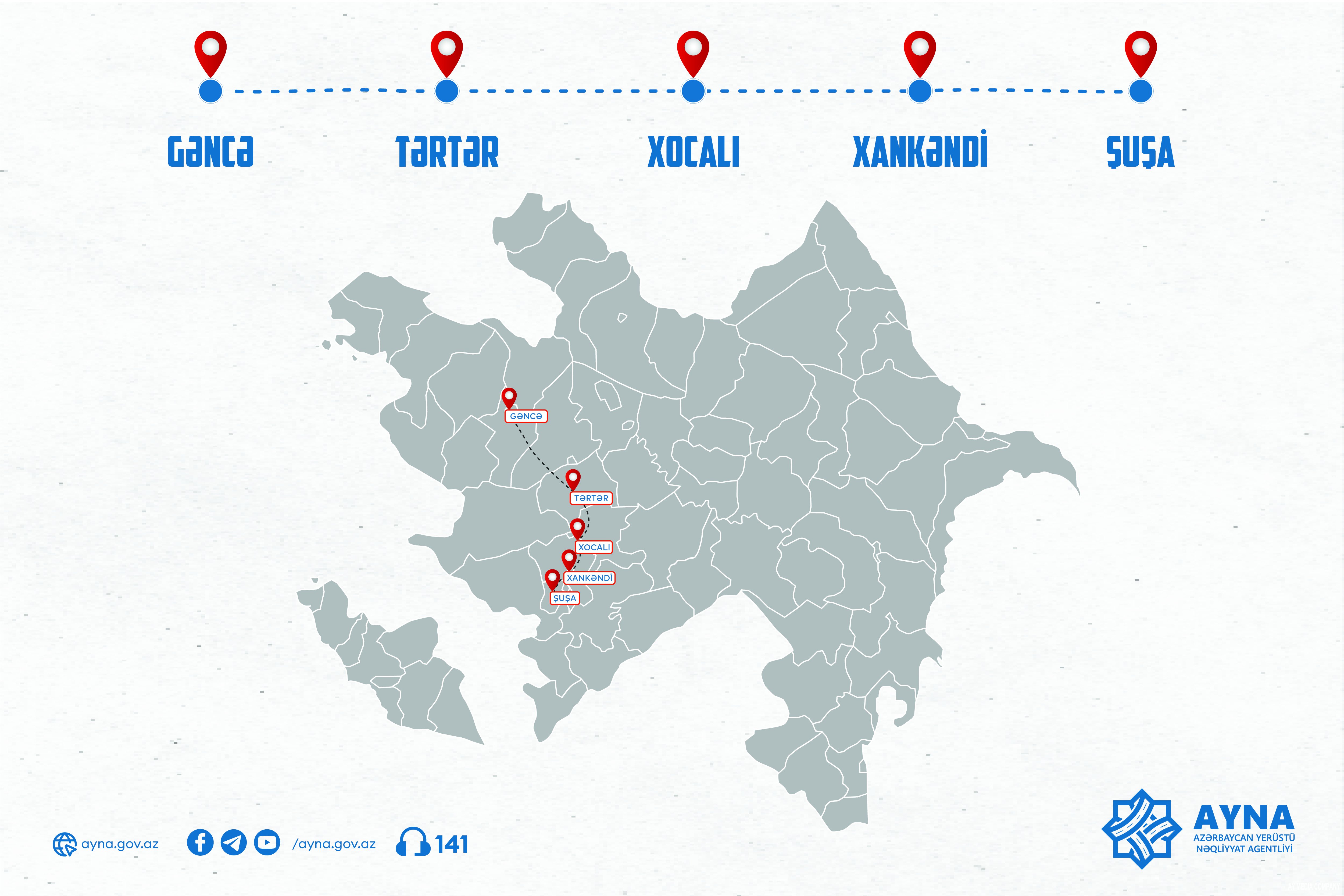 Xocalı, Xankəndi və Şuşa şəhərləri marşrut üzrə aralıq məntəqələri təyin edilib. Sumqayıt-Xocalı üzrə gedişhaqqı 14,30 AZN, Sumqayıt-Xankəndi üzrə 14,80 AZN, Sumqayıt-Şuşa üzrə isə 15,20 AZN müəyyən edilib.