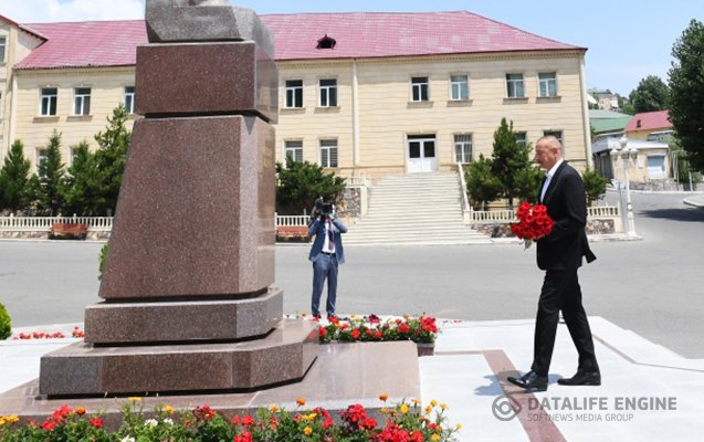 Dövlət başçısı Daşkəsən şəhərində ulu öndər Heydər Əliyevin abidəsini ziyarət edib.