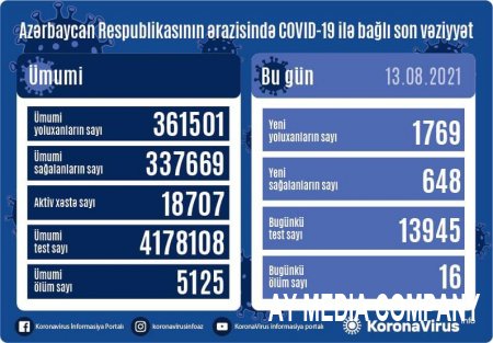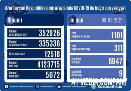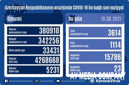 Son sutka ərzində yeni yoluxma hallarının müəyyənləşdirilməsi ilə əlaqədar 5616, ötən müddət ərzində isə ümumilikdə 3 980 697 test aparılıb.