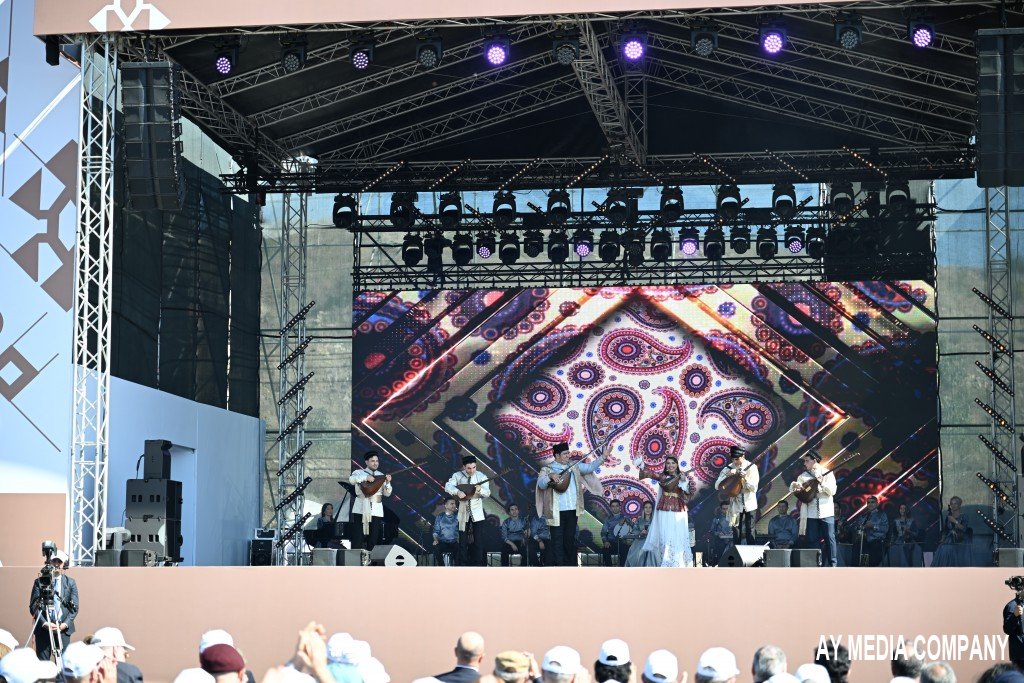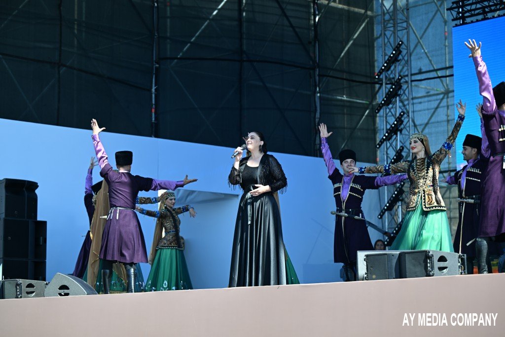 Aparıcılar Vətən müharibəsi haqqında məlumat verib, 44 gündə qazanılan şanlı Zəfərin tariximizə qızıl hərflərlə yazıldığını vurğulayıblar. Sonra söz musiqiyə verilib. Ana yurdun tərənnümü əsasında qurulan proqramda Azərbaycan Dövlət Rəqs Ansamblı "Qarabağ” rəqsini, Xalq Çalğı Alətləri Orkestri Vasif Adıgözəlovun “Bayram süitası”nı, Əməkdar artist Yaqut Abdullayeva Bəhram Nəsibovun “Qarabağ” mahnısını, Əməkdar artist İlkin Əhmədov “Azərbaycan maralı” xalq mahnısını, aşıq Aqşin Tarıyeloğlu “Ovşarı” saz havasını, xanəndələr Vüsal Zamanov, Güllü Muradova və Rəvanə Qurbanova “Qarabağ şikəstəsi”ni, Əməkdar artistlər Gülüstan Əliyeva Məmmədbağır Bağırzadənin “Cəbrayıl”, Zahid Quliyev İbrahim Topçubaşovun "Dağlarda duman gözəldir” mahnılarını ifa ediblər. Konsertdə həmçinin müğənni Taleh Hüseynli Elnur Şahmarovun “Cəbrayılım”, İlhamə Qasımova Elza İbrahimovanın “Ey Vətən”, Xalq artisti Azər Zeynalov Fikrət Əlizadənin “Vətənim”, Sona Əzizova “El bilir ki, sən mənimsən”, "Sazəndə” aşıqlar qrupu Dirili Qurbaninin “Bayatı-şikəstə”, Xalq artisti Samir Cəfərov Cavanşir Quliyev “Bura vətəndir”, “Renesans” uşaq xoru Rauf Hacıyevin “Azərbaycan”, Azərbaycan Dövlət Rəqs Ansamblı "Zəngəzur yallısı" rəqsini təqdim ediblər. Konsert proqramına Xalq artisti Mələkxanım Əyyubovanın ifasında Rauf Məmmədovun “Yaşa mənim xalqım” mahnısı ilə yekun vurulub. Bütün ifalar alqışlarla qarşılanıb. Günün ikinci yarısında Azərbaycan Dövlət Milli Gənc Tamaşaçılar Teatrı "Qaraca qız", Azərbaycan Dövlət Akademik Musiqili Teatrı isə "Arşın mal alan" tamaşaları nümayiş etdiriblər.