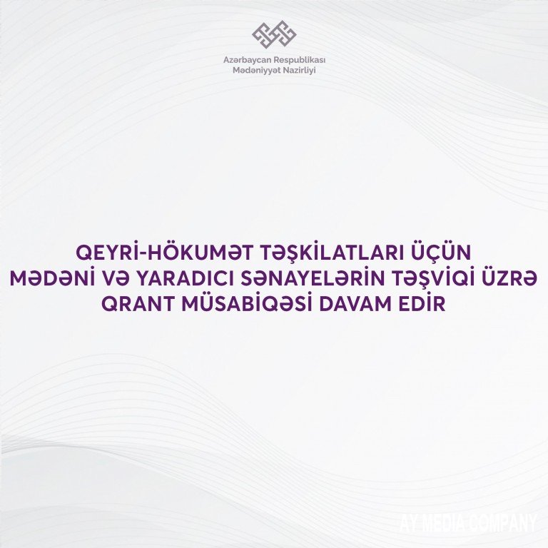 Mədəniyyət Nazirliyi qeyri-hökumət təşkilatları üçün mədəni və yaradıcı sənayelərin təşviqi üzrə qrant müsabiqəsi keçirib. Qrant müsabiqəsinə qeyri-hökumət təşkilatlarından 192 layihə təqdim olunub.