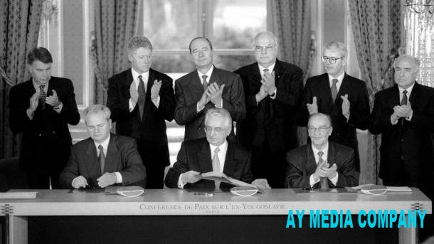 1995-ci ilin 14 dekabr tarixindә Yuqoslaviyada üç il davam edәn vәtәndaş müharibәsi Aliya İzzetbeqoviç, Slabodan Miloseviç vә Franjo Tudjman tәrәfindәn imzalanan müqavilә ilә sona çatıb.