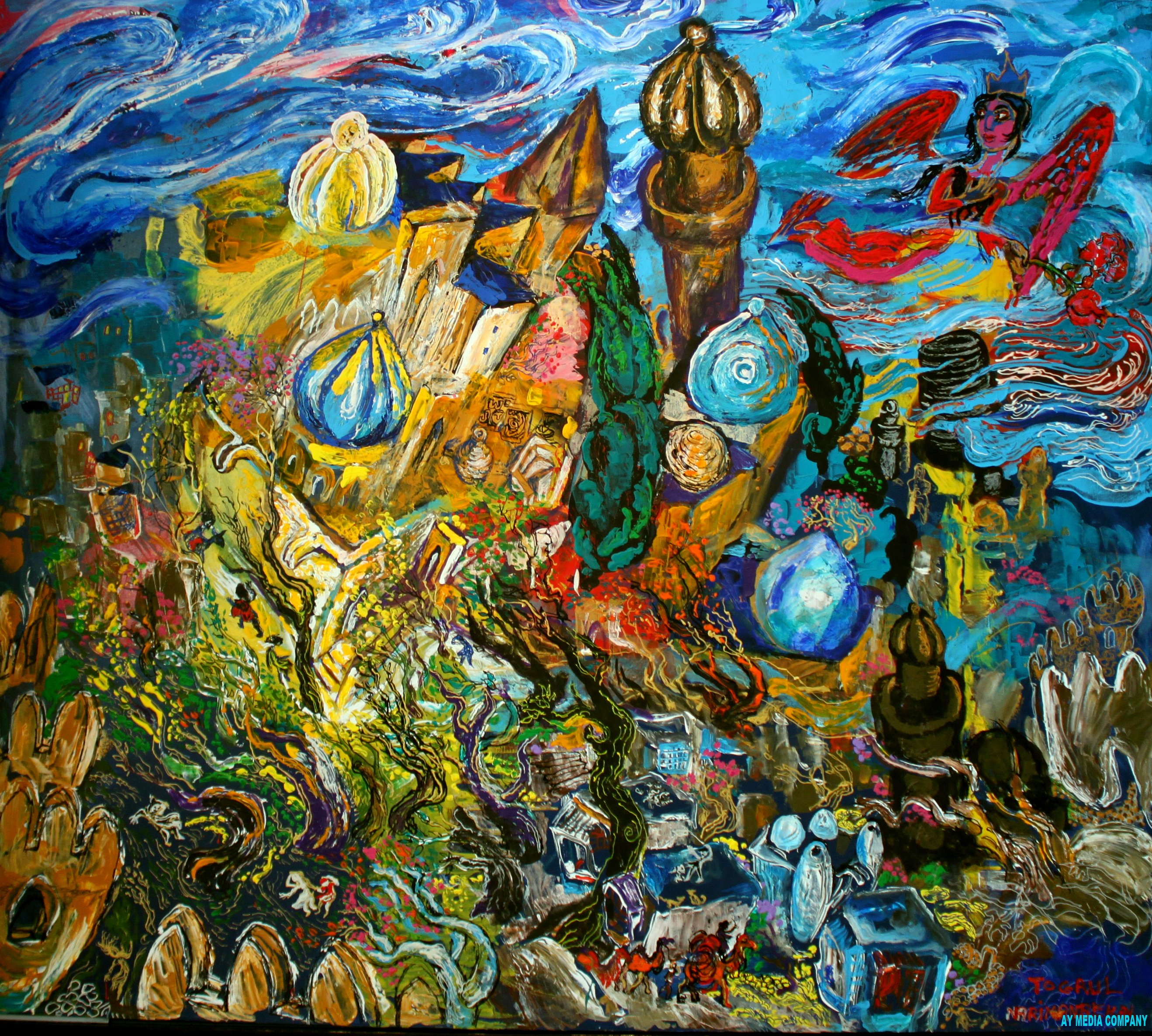 Nar onun rəsmlərində Göyçaydan Bakıya, oradan da Parisə, Nyu-Yorka, İstanbula, Londona, Moskvaya və neçə-neçə uzaq şəhərlərə gedib çıxıb. Qəribə və qeyri-adi yaradıcılıq qabiliyyətinə malik Xalq rəssamı Toğrul Nərimanbəyov təkcə doğma vətənində deyil, dünyanın əksər ölkələrində yaxşı tanınır. Onun əsərləri dünyanın bir çox incəsənət muzeylərində, fondlarda saxlanılır. Çexiya, Rusiya, Hindistan, Fransa, Litva, ABŞ və digər ölkələrdə görkəmli rəssamın fərdi sərgiləri keçirilib.