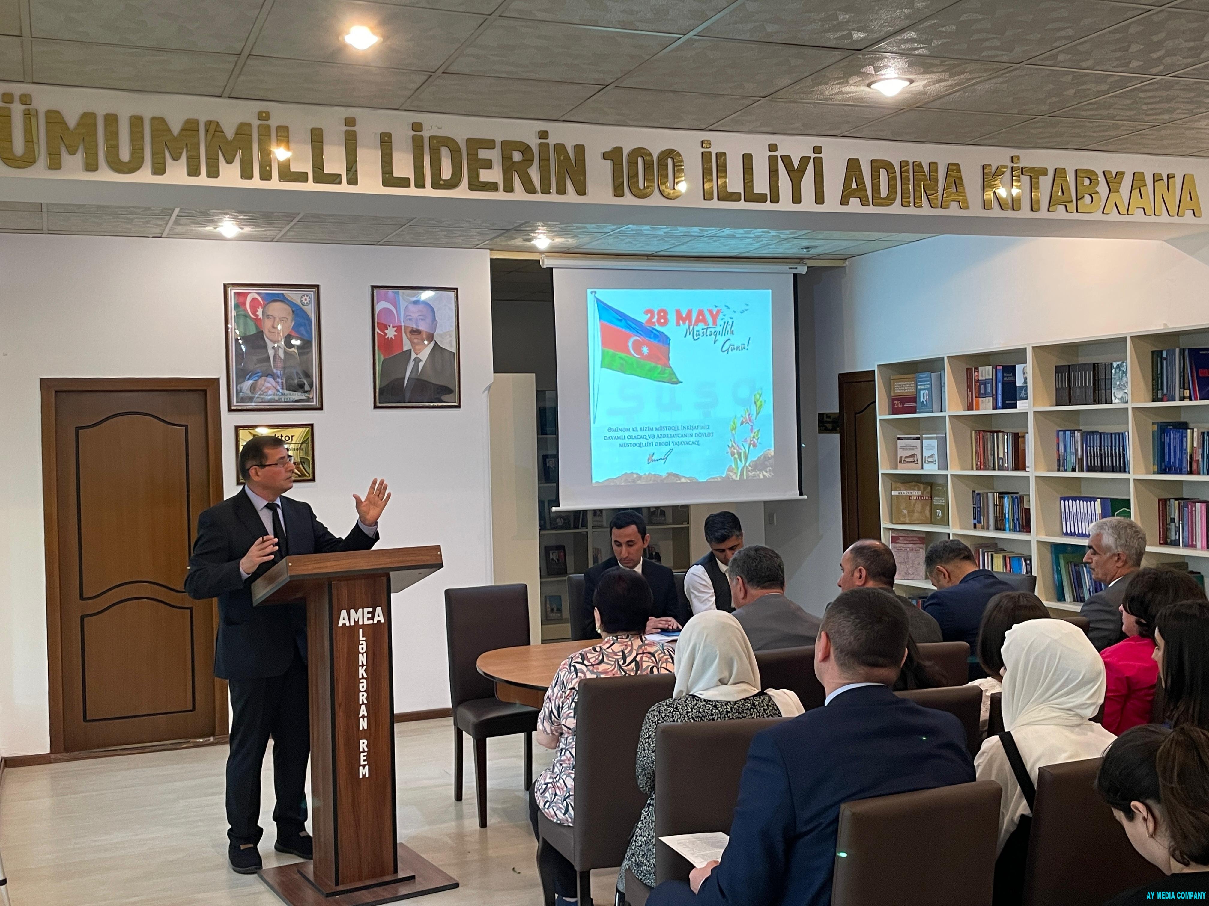 Mayın 27-də AMEA-nın Lənkəran Regional Elmi Mərkəzində keçirilən növbəti elmi seminar Ümummilli Lider Heydər Əliyevin anadan olmasının 101 illiyinə və 28 May - Müstəqillik Gününə həsr edilib.